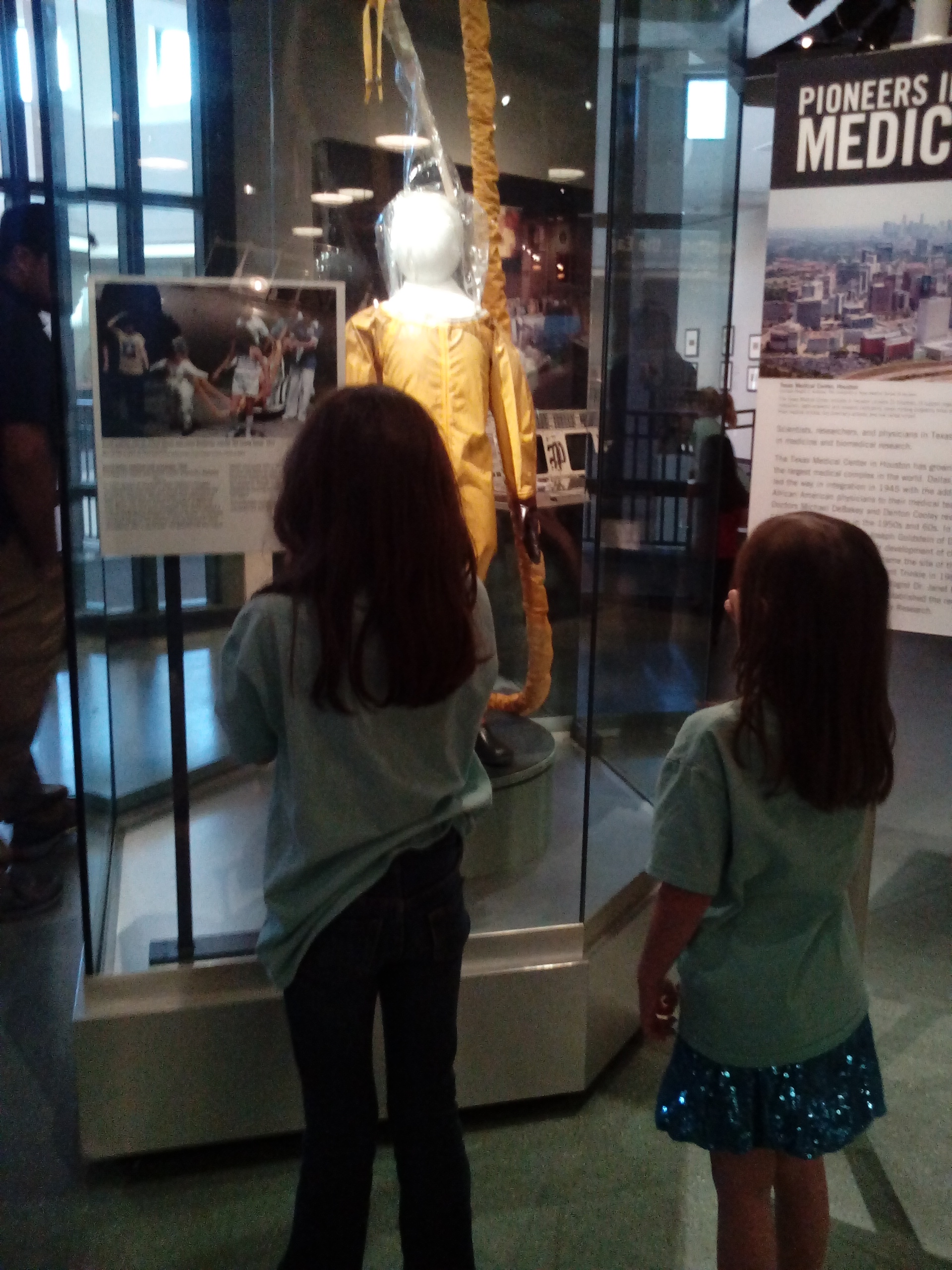 The Bullock is three levels of exhibits all centered around Texas History. There are two theaters, an Imax that offers 3-D movies, and the Texas Spirit theater, which offers a 4-D theater experience. We took advantage of special $4 event pricing to see Spirit- Star of Destiny, a quarter hour of condensed Texas history complete with a seat jolt “rattlesnake bite” and misting fans during the Galveston hurricane.