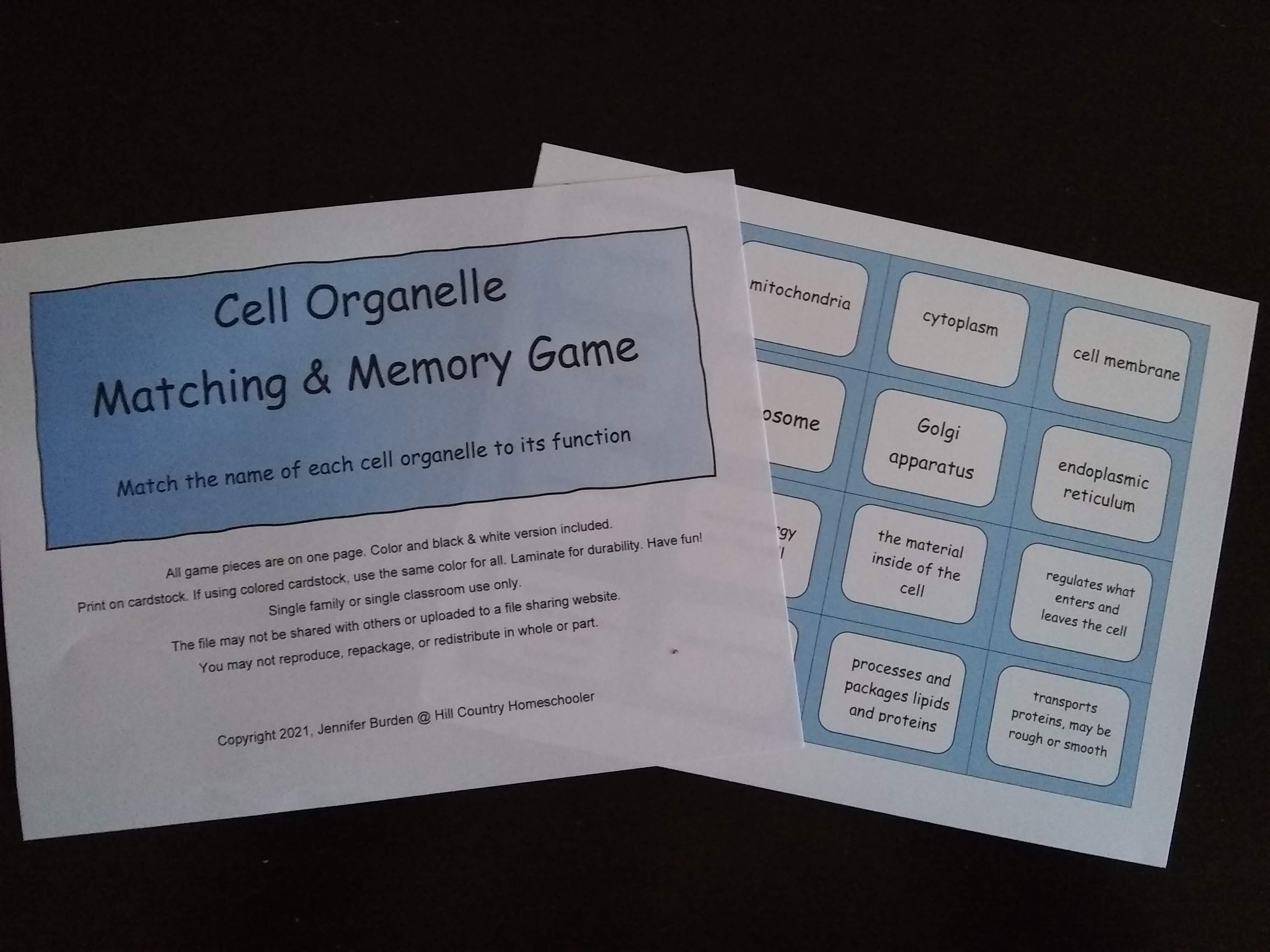 My kids love games. On Fridays, we historically play math games, but sometimes we add in geography games, logic games, or puzzles. I have decided to create a few games to use in science to help with learning vocabulary that my middle schoolers will be using again soon in high school biology. We just started Kingdoms and Classification by The Good and the Beautiful. I have another post about a few taxonomy resources I created, however I also want to share a matching and memory game I made to go with this unit on cell parts and their functions.
