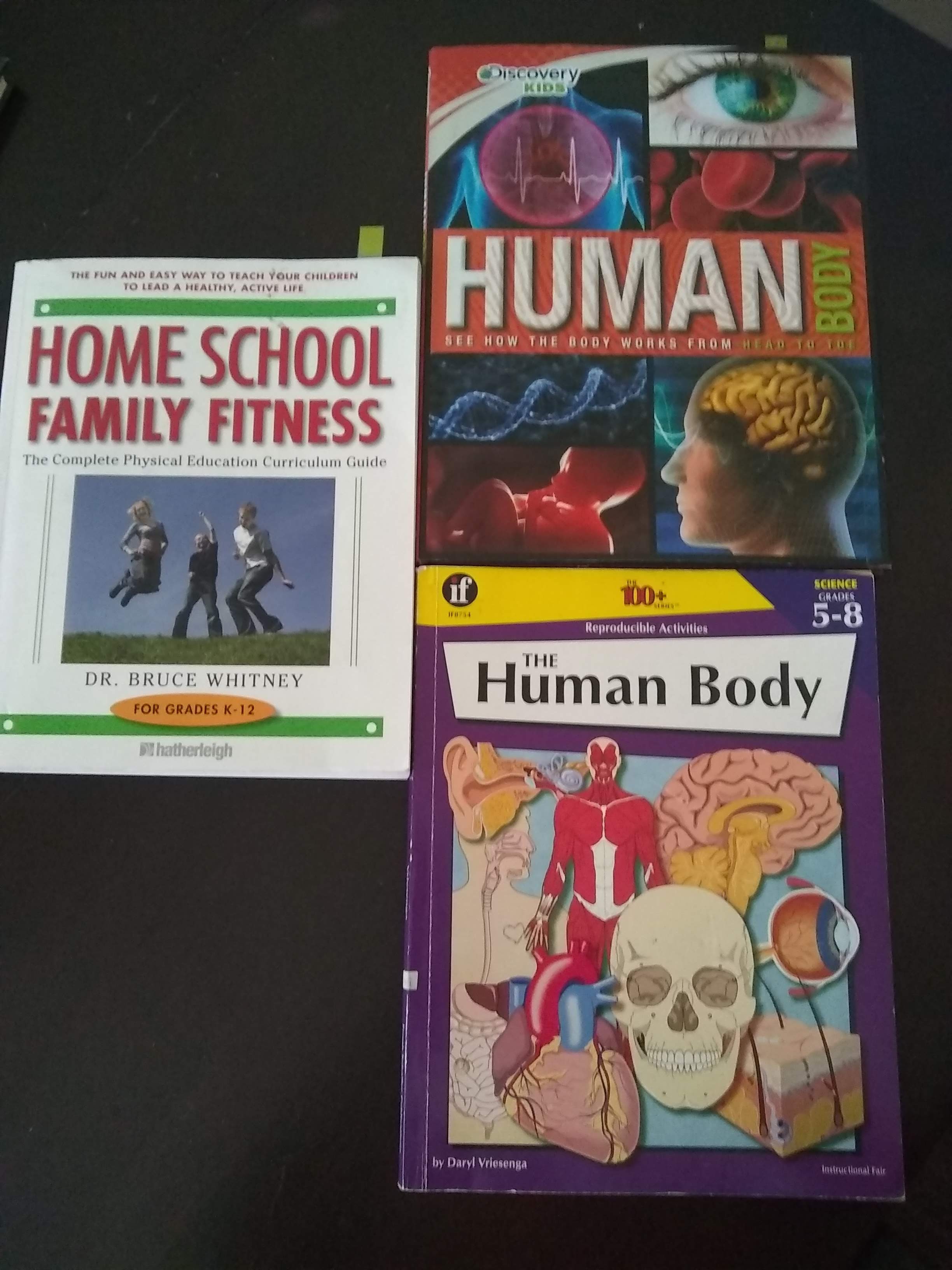 For P.E., I am using Home School Family Fitness as a guide for a P.E. class I will lead for our local homeschool group this year. For our P.E. classes at home, I am also including lessons on the human body systems using the two books shown.