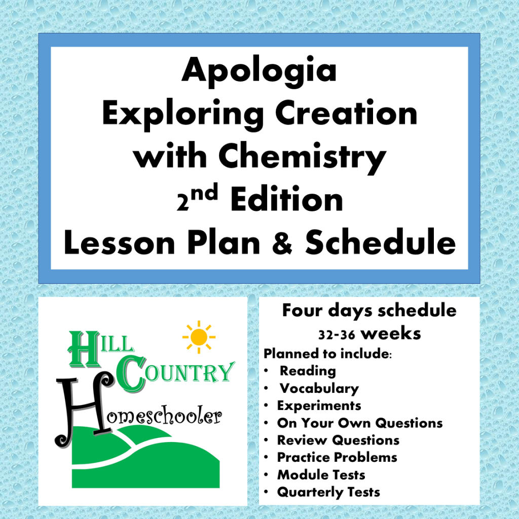 This basic plan for Apologia Chemistry 2nd edition is available for purchase here at my TPT store.