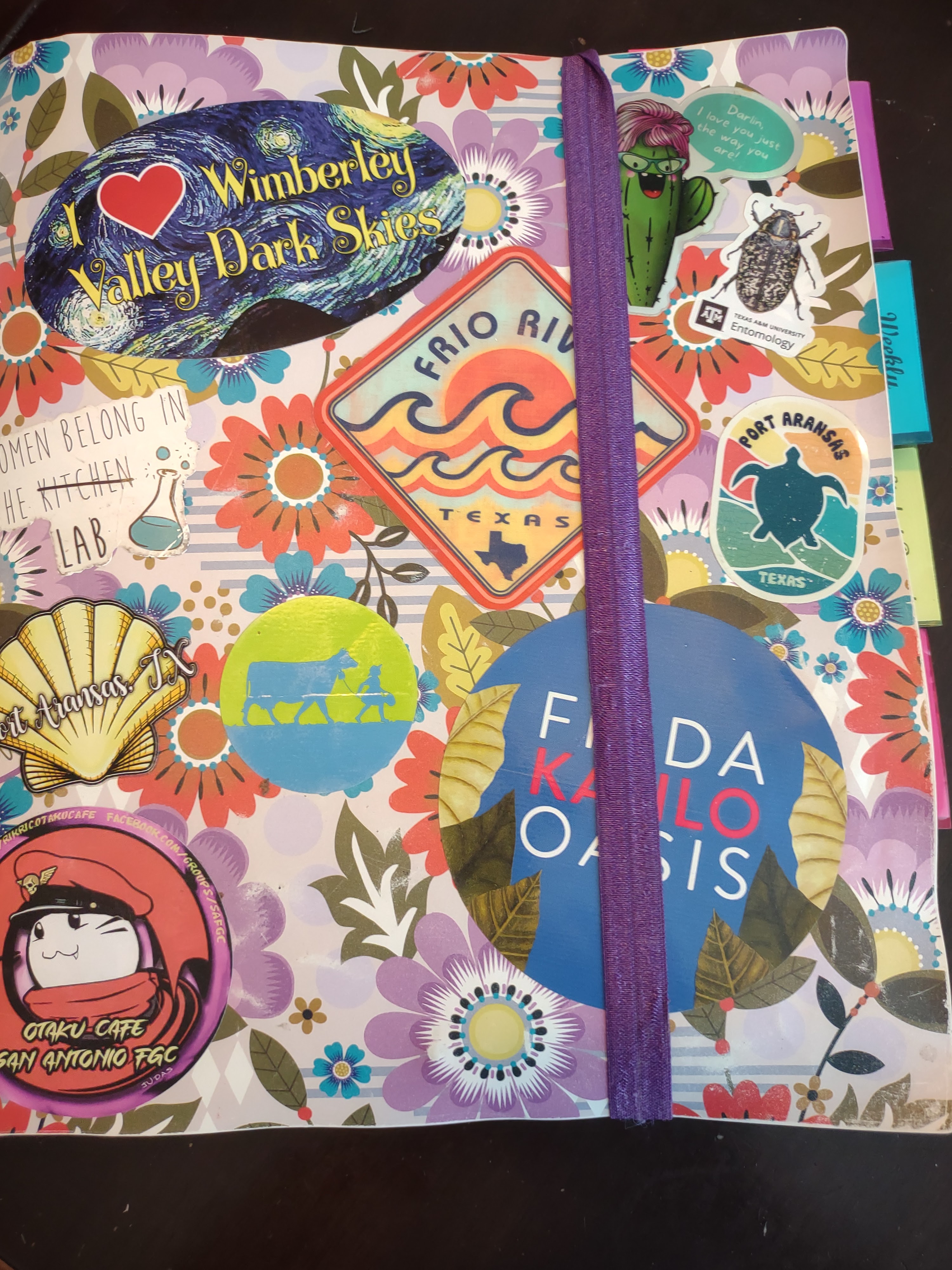 This is my current planner. I mean, it is so cute with its colorful cover and souvenir stickers. This is actually the same binder from Dollar Tree that I used last year. I just pulled the pages out, put them in a boring binder on the bookshelf, and filled this one with fresh pages. I just love the colorful pocket dividers and elastic band (it is a flexible binder, so i punched two holes in the back cover and used that to thread the elastic through). But, being a Dollar Tree binder going on daily use for two years, I was just waiting for “explosion day” when the rings would give way and pop open, spilling all the year’s planning and progress out onto the ground. Time for a new binder for a new year.