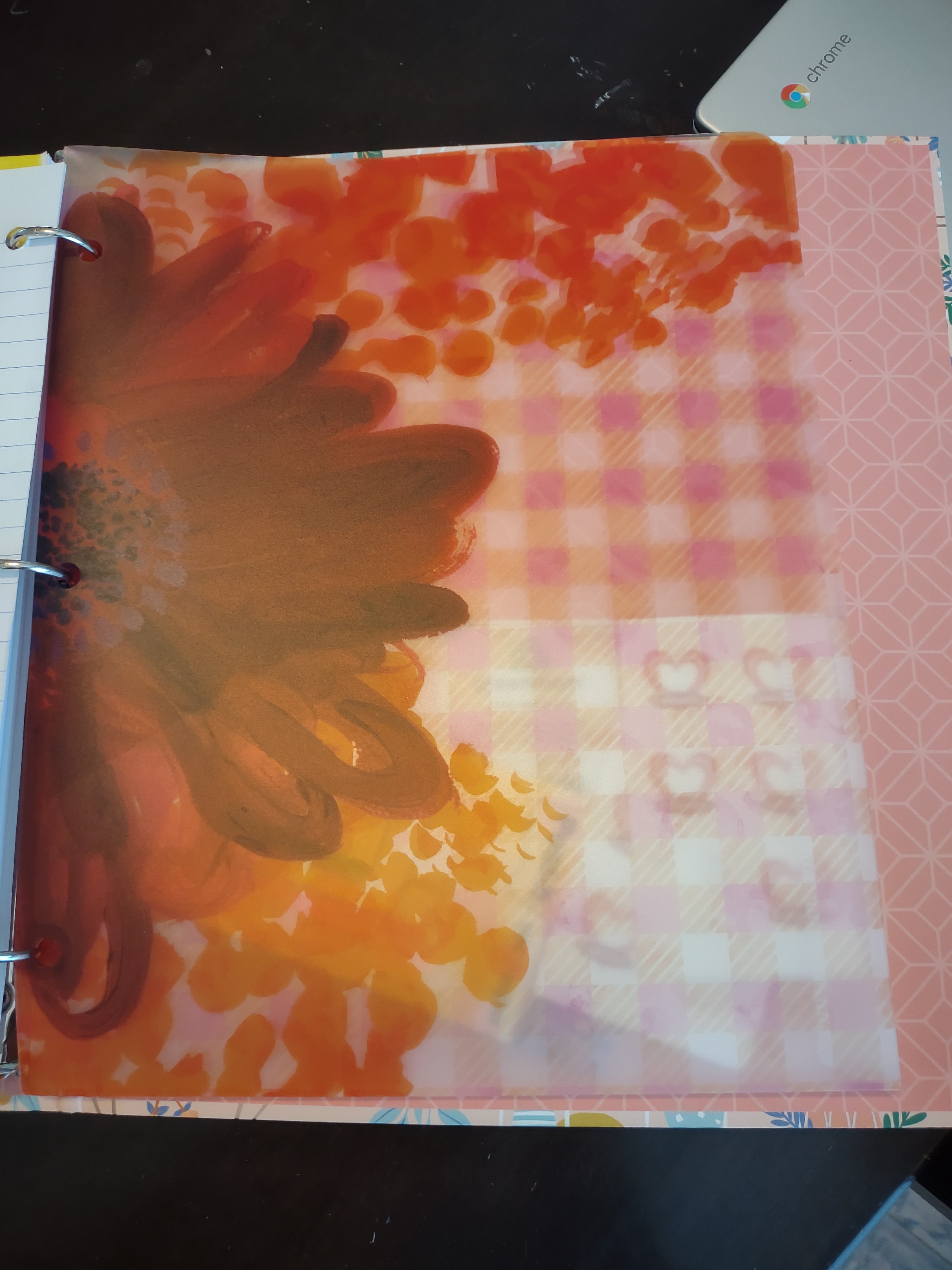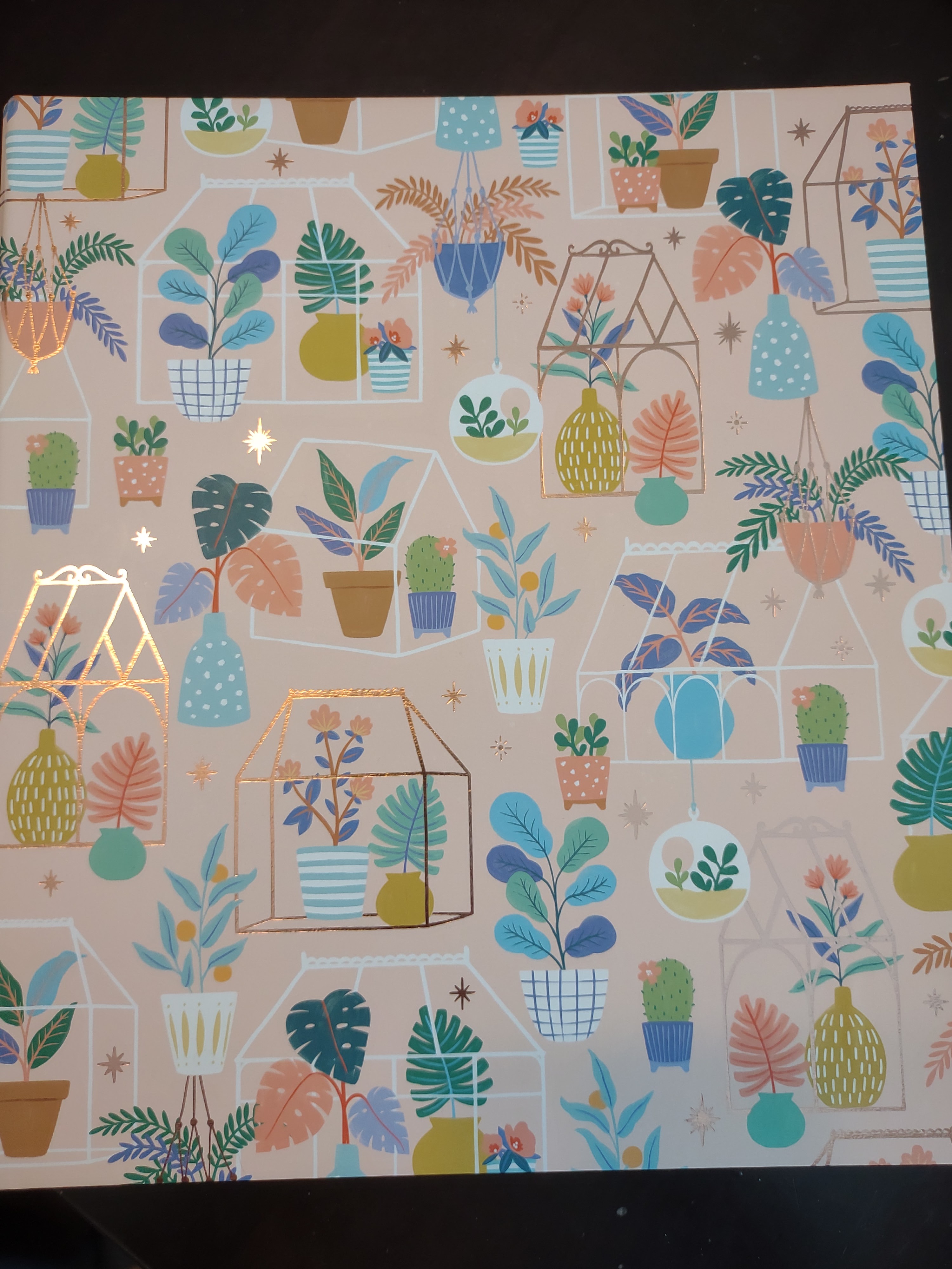 This is the binder that I selected from Target for this year. It is a lovely peach with houseplants and gold accents. I am a little worried about the fact that it is cardboard and not plastic. Will it hold up to my abuse?