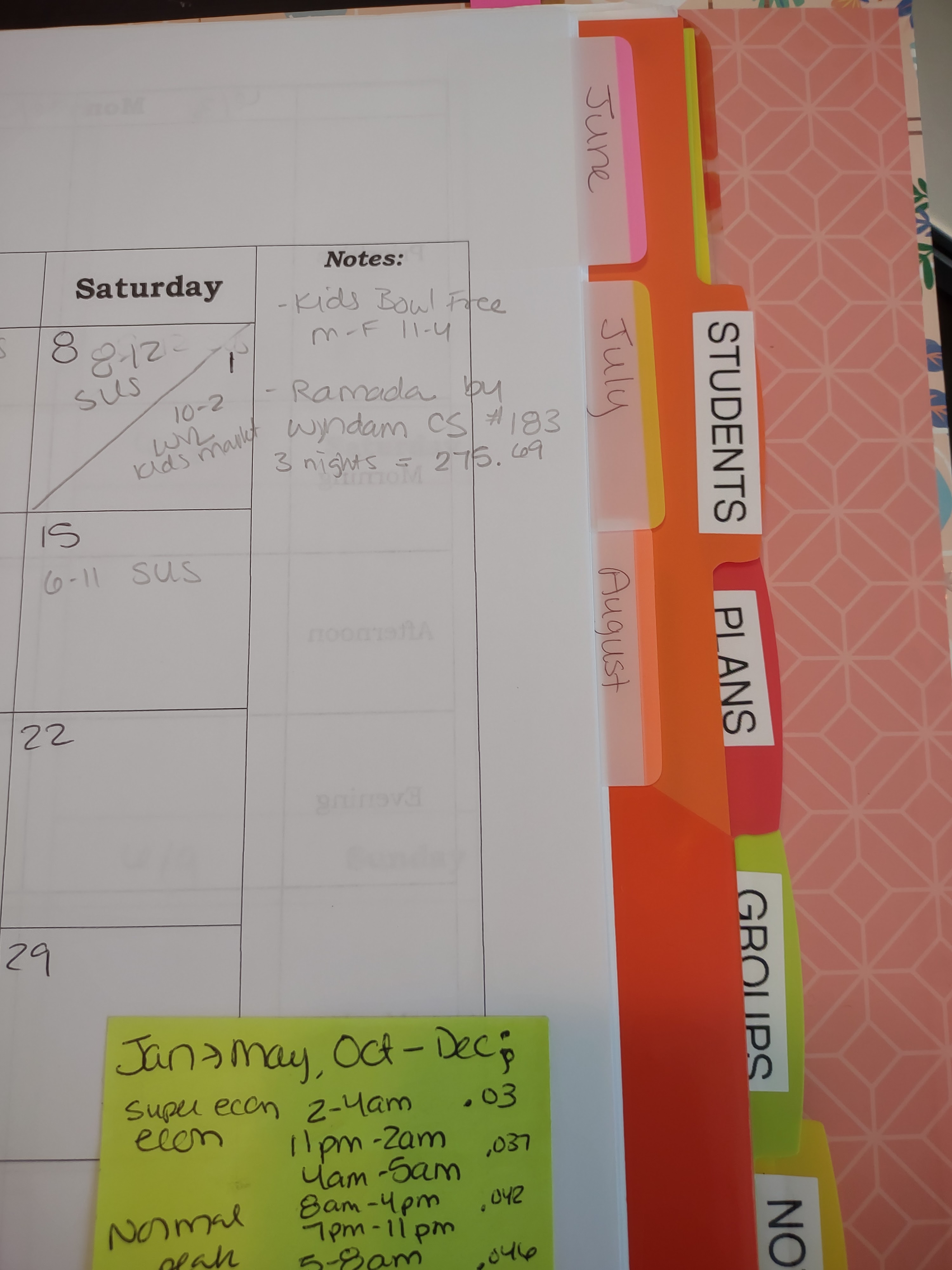 In a perfect world, I would switch all my written planning, scheduling, and record keeping to Google Calendar. I already use Google Classroom, so it would make sense. An electronic version of my planner would be portable, accessible form anywhere on multiple devices, make it easy to share info with family, and look up previous events with ease. However, I am a creature of well-established habit of writing things down on paper. I like it all out where I can see it on the table in front of me, even if that means having to pull previous planner books from the book shelf to find the past event info that I am looking for.