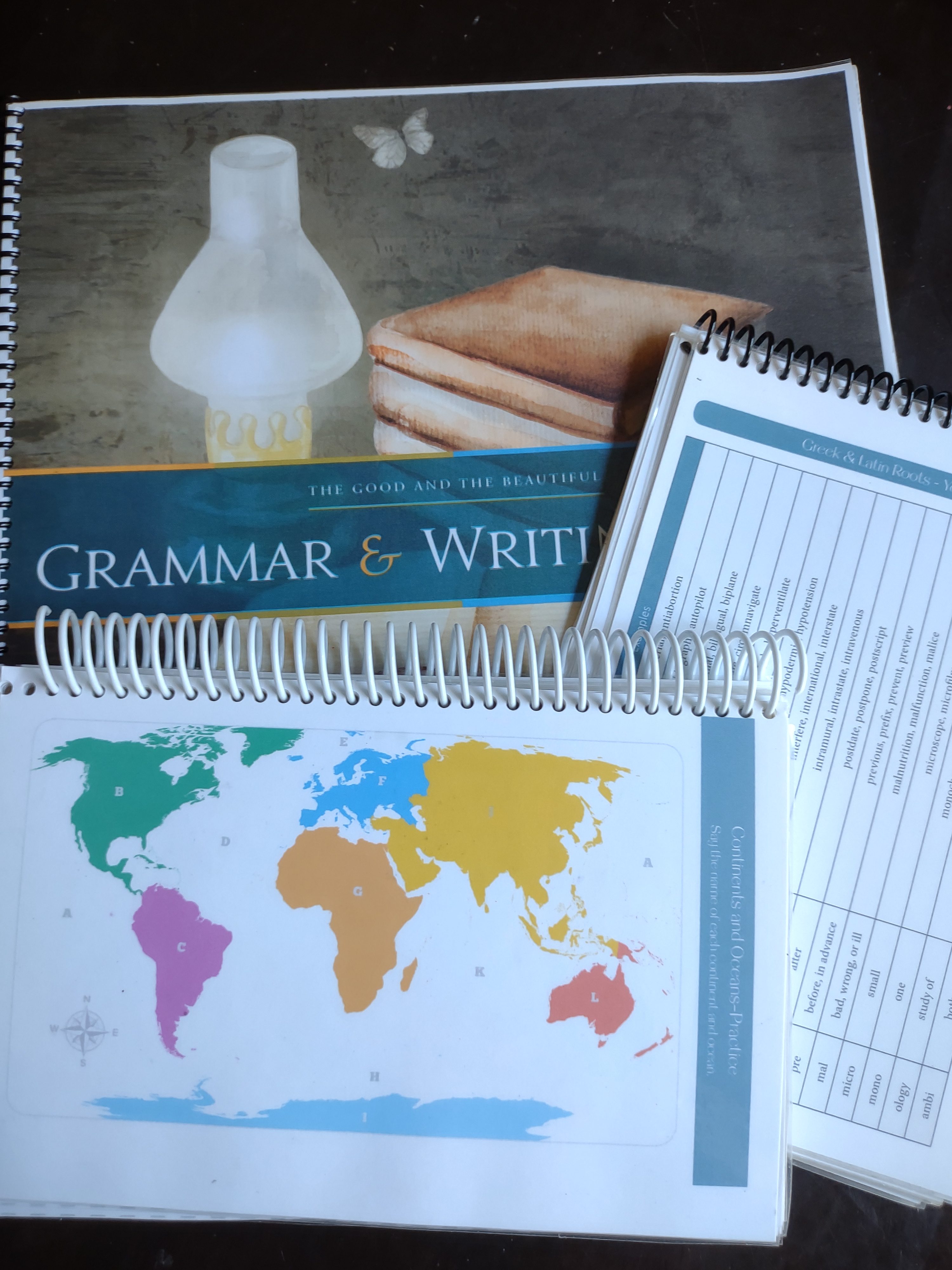 We are also continuing with the last year of The Good and the Beautiful ELA, Year 3. Although the reading selections are antiquated and the art projects sometimes bore her, I feel the curriculum is rigorous where it counts. The units encompass all areas of ELA, from writing, vocabulary, and grammar to literary analysis and poetry. Units also include geography and art. Once she finishes all three years, I award one credit of art and one credit of world geography on the transcript, as these subjects are also addressed on the exams, not just in the unit work. I did purchase the literature books for the units from the publisher, but everything else was purchased as a pdf and printed/laminated/bound at home. Since I plan on using this curriculum for all three girls, it made the most sense to do it this way. In case something happens to a resource over the years and I need a replacement, I can just print another one. I pre-print everything needed for the year, including the ten units, the exams, and lesson schedule. The lesson schedule and units will be placed into a binder with dividers, and the exams given once each unit is complete. I prefer the binder to the pre-printed books because I we can add their printed writing assignments for each unit.