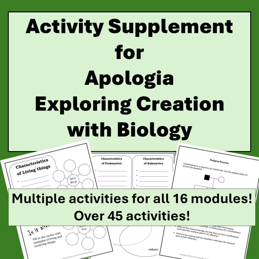 I just finished a new product to go along with Apologia’s Biology textbook: a student supplement packed with activities!