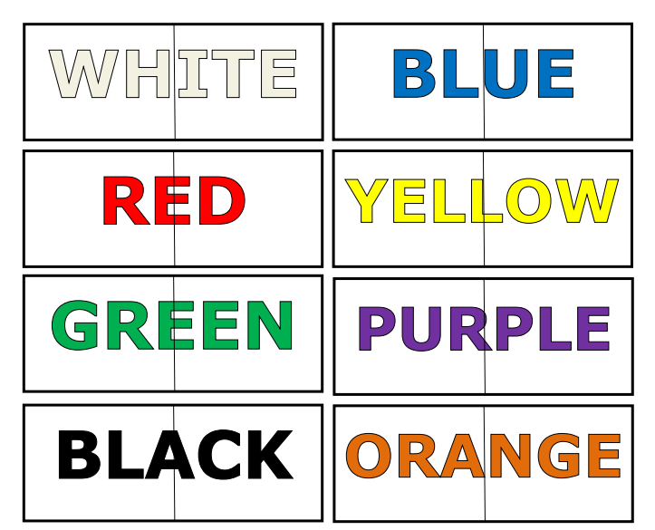 Print on cardstock in either the color version or black-and-white version. The black-and-white version is nice because the child can color in the words with crayons or markers before cutting out. In fact, the child can be introduced to the cards with the color version, and then make their own colored set with the black and white version.