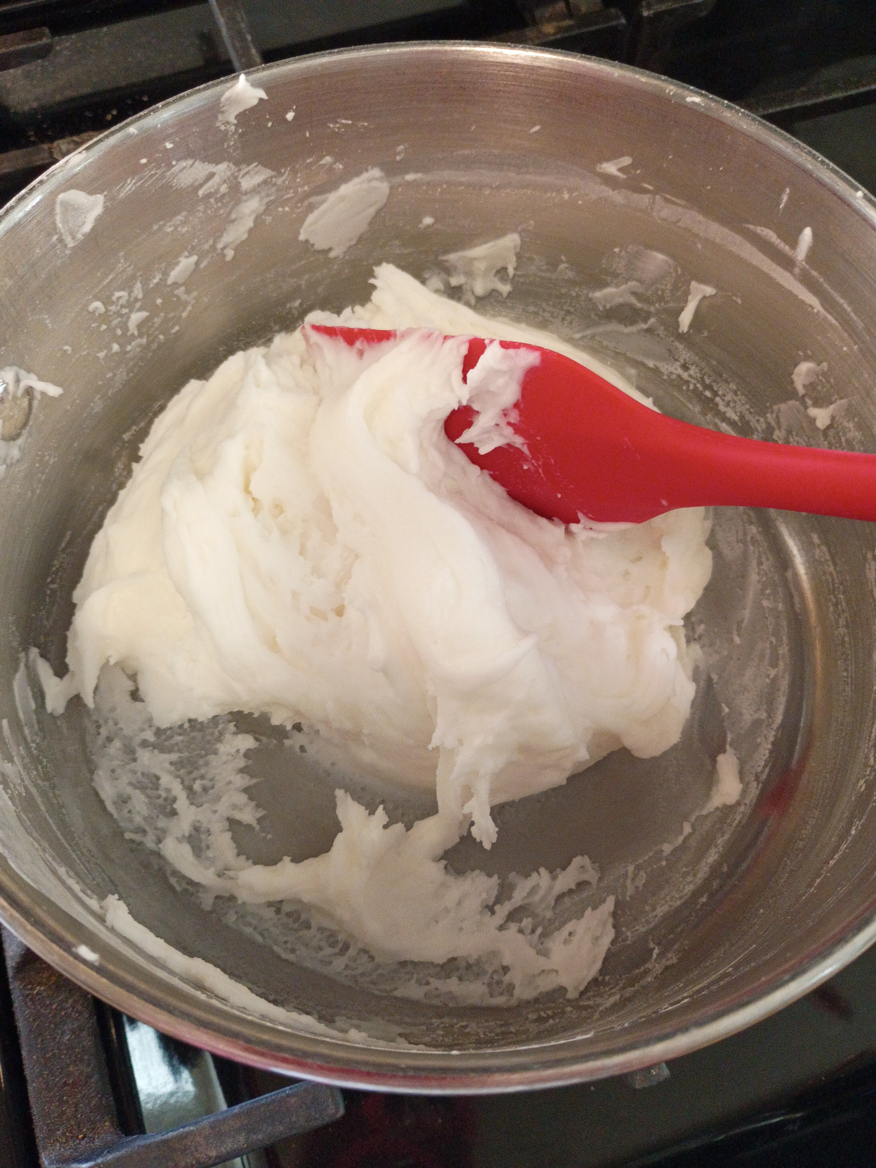 - •Mix the three ingredients in a saucepan and cook over medium heat, stirring, until the mixture pulls from the sides of the pot and resembles mashed potatoes. Remove from heat, do not overcook.