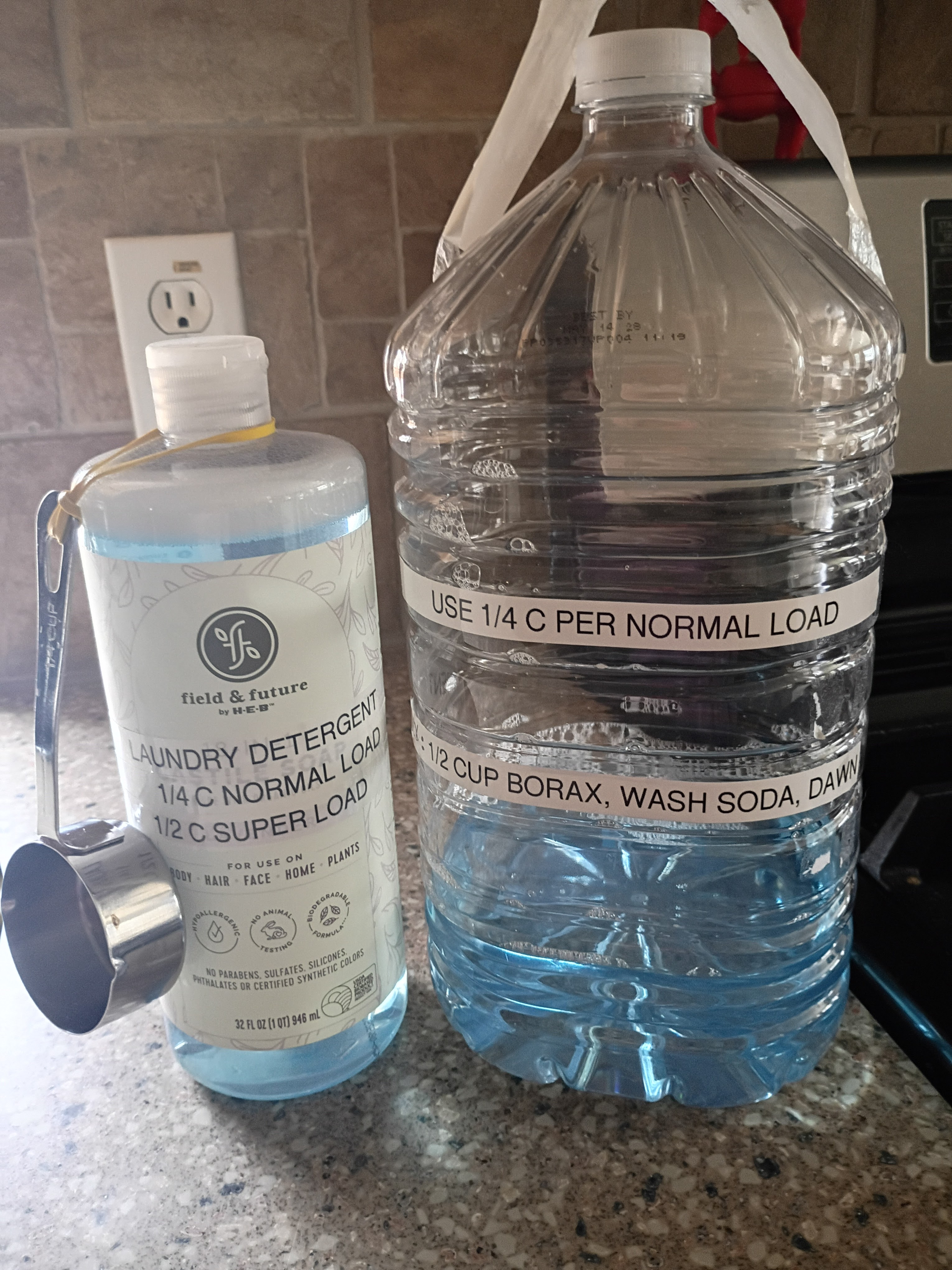 If I run low on detergent, Borax, or washing soda, after mixing the latest batch, I have plenty of time to pick up more from the store. I love this cushion in the laundry detergent supply chain. No more frantic trips to the store just to pick up detergent because the laundry has become a mountain overnight.
