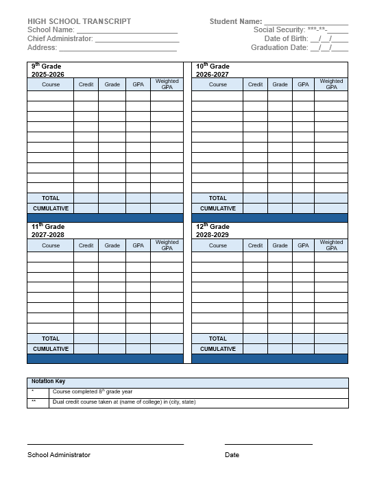 For planning and recording your child’s credits and GPA for graduation, I offer a free transcript in my Teachers Pay Teachers store. Use the form to plan out the courses for the student’s high school years, and then add grades to turn it into an official transcript for graduation!