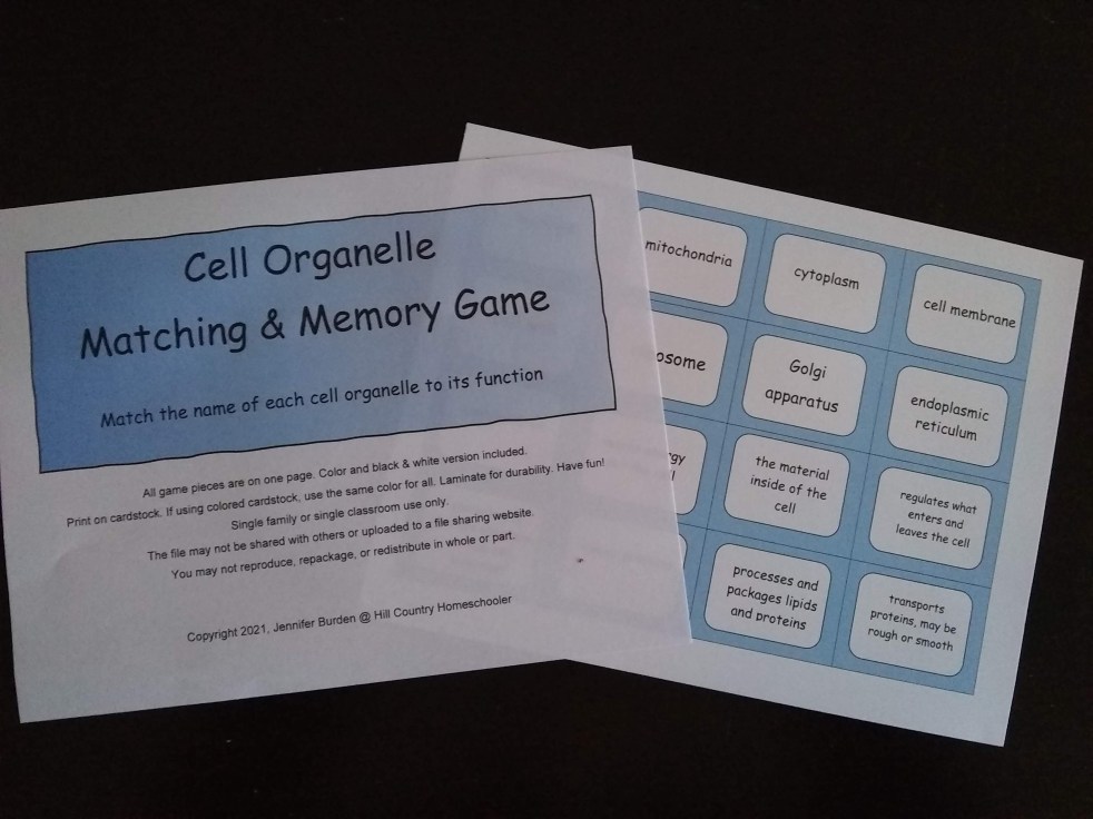 My kids love games. On Fridays, we historically play math games, but sometimes we add in geography games, logic games, or puzzles. I have decided to create a few games to use in science to help with learning vocabulary that my middle schoolers will be using again soon in high school biology. We just started… Continue reading A Matching and Memory Game for Learning Cell Organelles